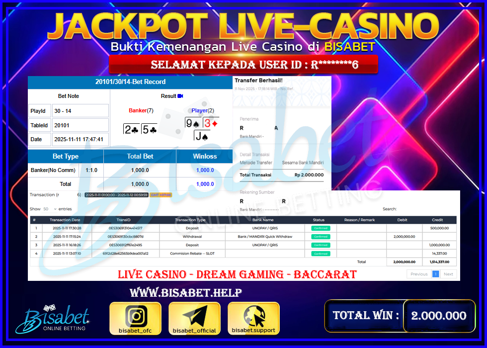 11-11-2025 | Bukti jp bisabet Kemenangan member di bayar tuntas tanpa embel-embel .