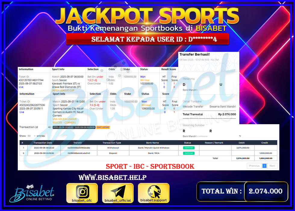 BUKTI JP BISABET – MEMBER DEPO 1 JUTA JADI 2,074 JUTA