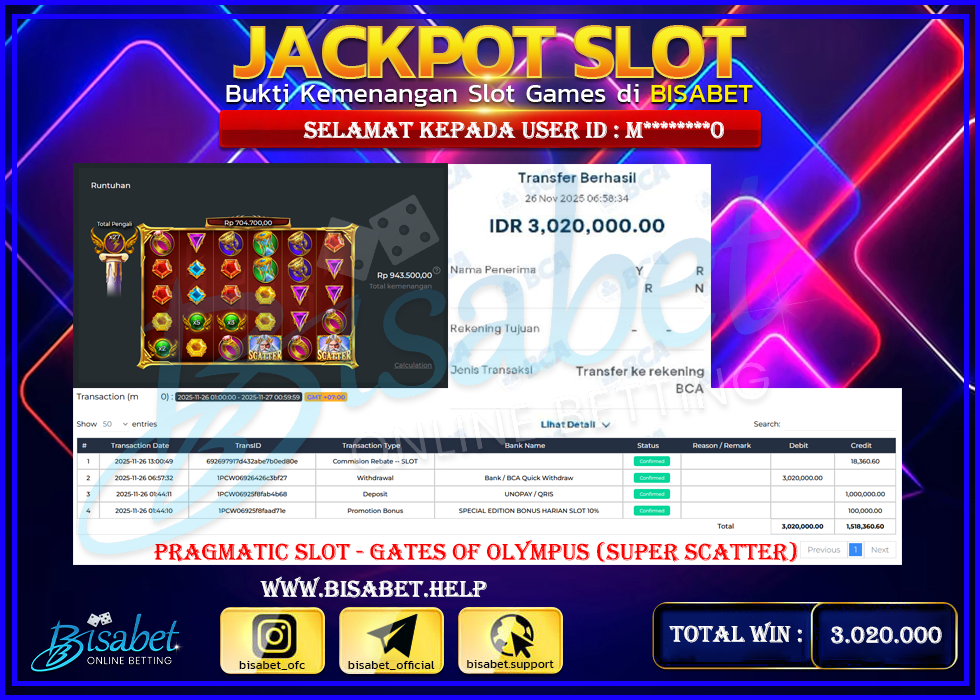 26-11-2025 | Bukti jp bisabet Kemenangan member di bayar tuntas tanpa embel-embel .