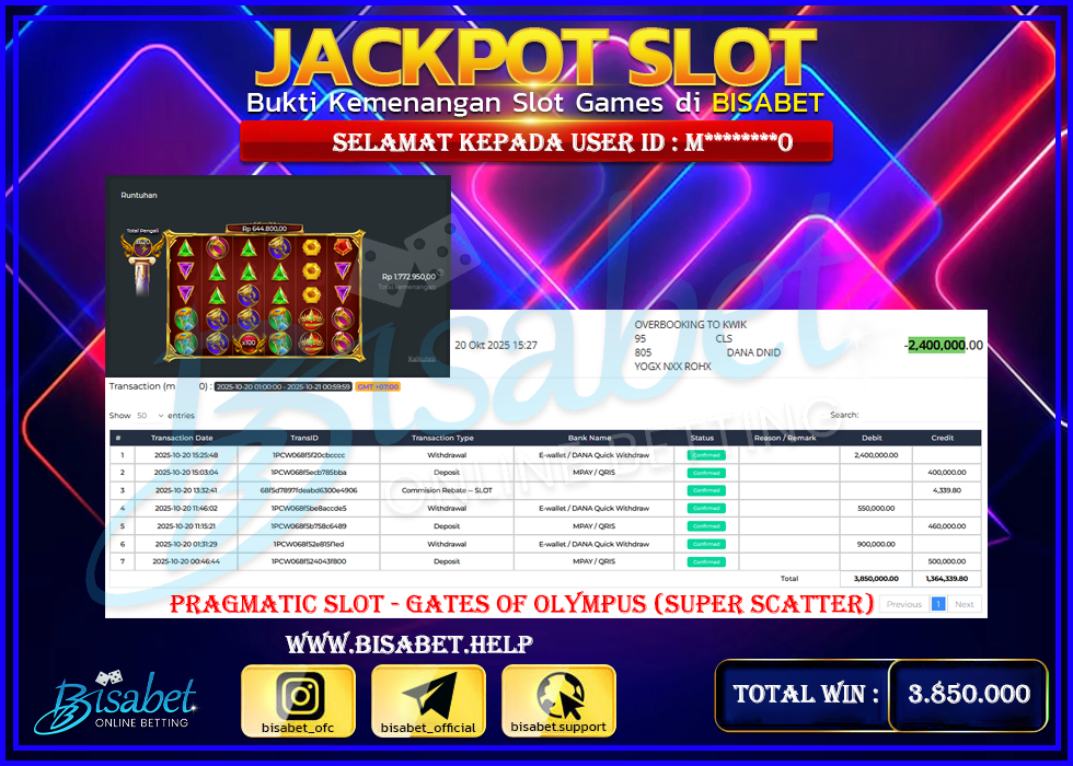 20-10-2025 | Bukti jp bisabet Kemenangan member di bayar tuntas tanpa embel-embel .