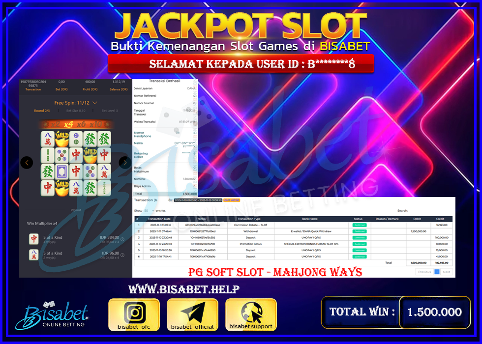 BUKTI JP BISABET – MEMBER DEPO 156 RIBU JADI 1,5 JUTA