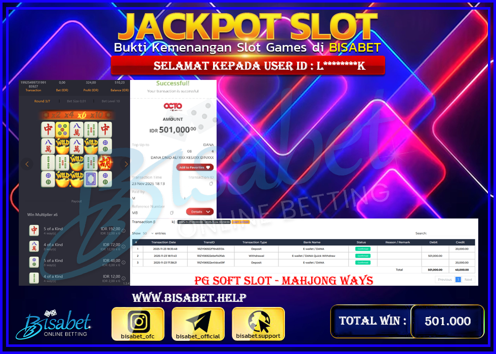 BUKTI JP BISABET – MEMBER DEPO 20 RIBU JADI 501 RIBU