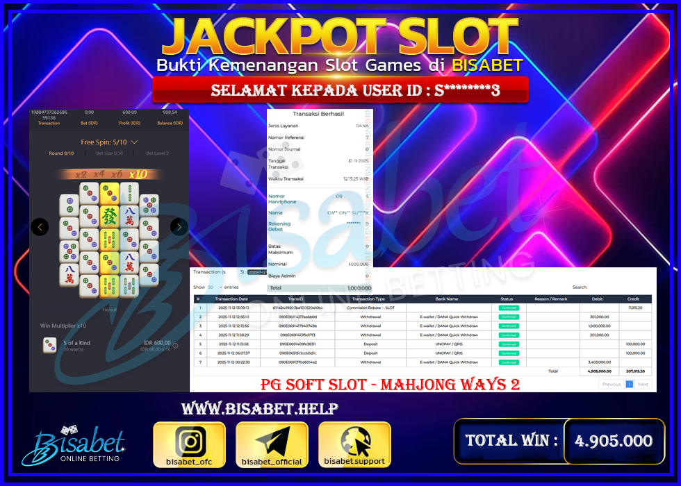 BUKTI JP BISABET – MEMBER DEPO 200 RIBU JADI 4,905 JUTA