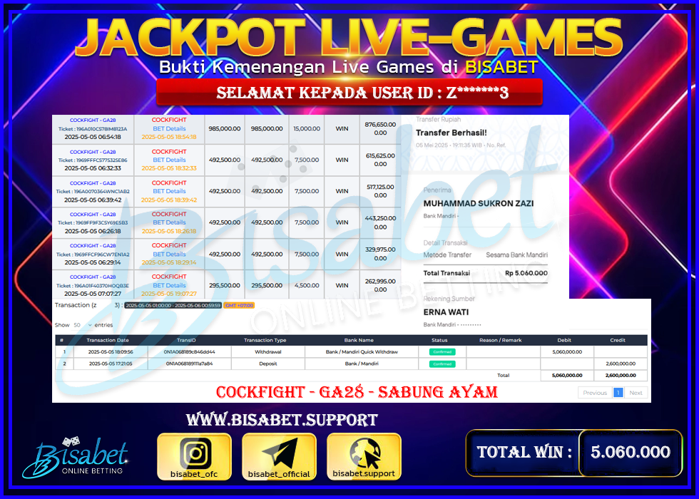05-05-2025 – Bukti jp bisabet Kemenangan member di bayar tuntas tanpa embel-embel .