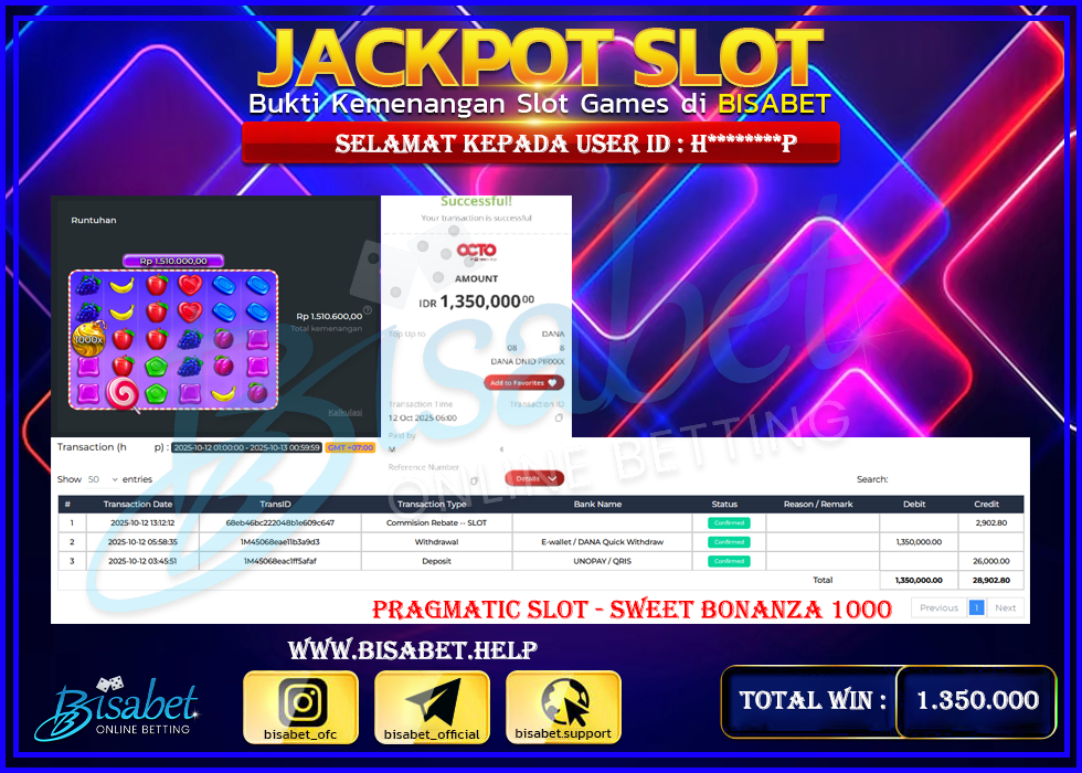 12-10-2025 | Bukti jp bisabet Kemenangan member di bayar tuntas tanpa embel-embel .
