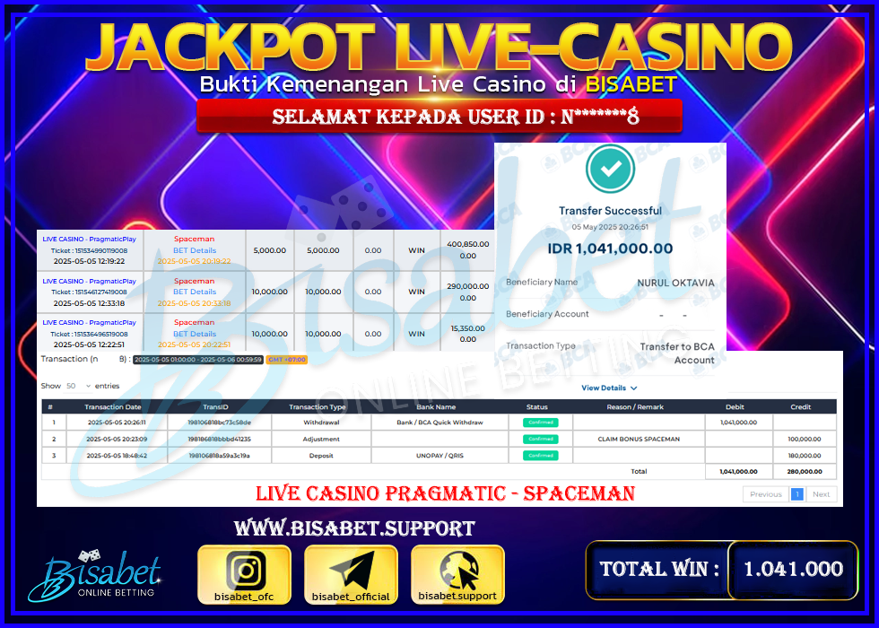05-05-2025 – Bukti jp bisabet Kemenangan member di bayar tuntas tanpa embel-embel .