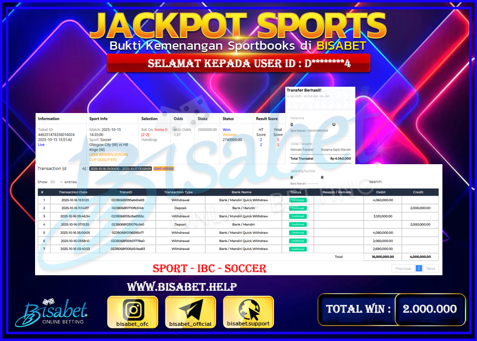 16-10-2025 | Bukti jp bisabet Kemenangan member di bayar tuntas tanpa embel-embel .