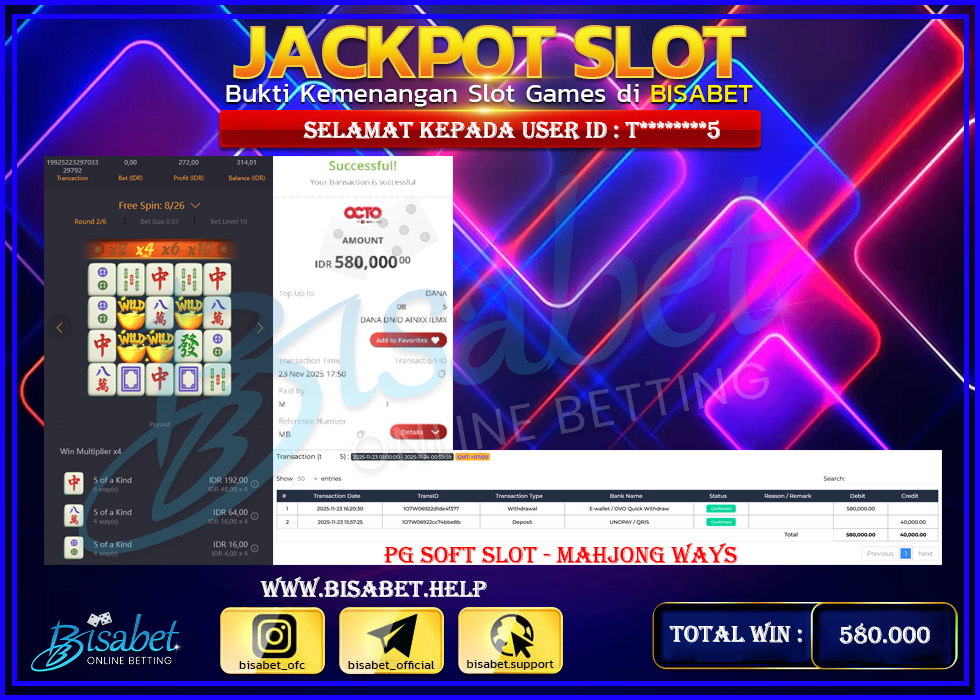 BUKTI JP BISABET – MEMBER DEPO 40 RIBU JADI 580 RIBU