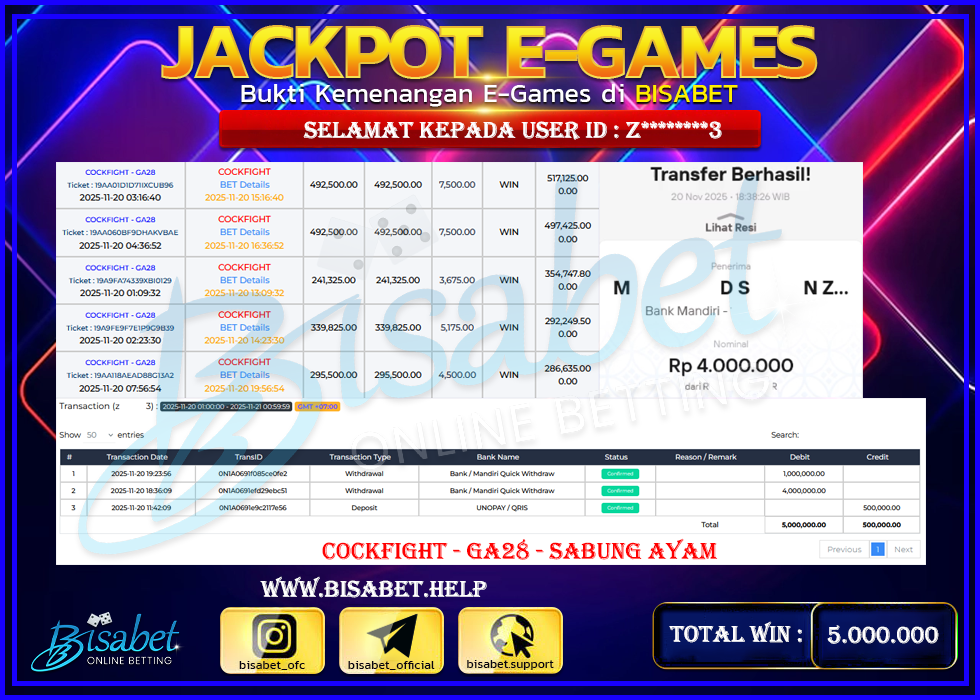 20-11-2025 | Bukti jp bisabet Kemenangan member di bayar tuntas tanpa embel-embel .