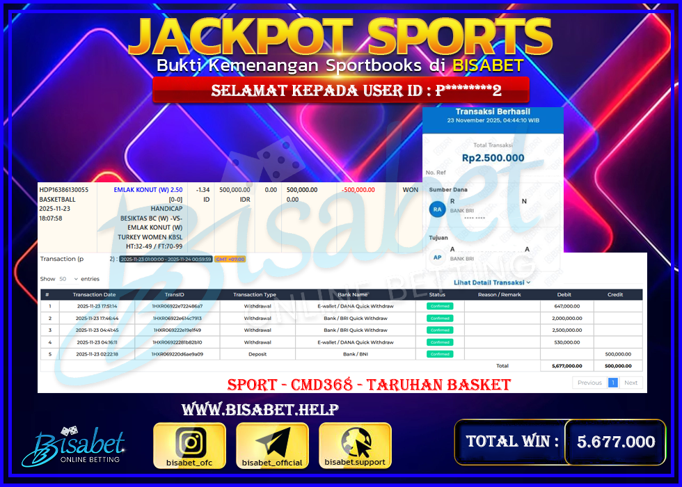 BUKTI JP BISABET – MEMBER DEPO 500 RIBU JADI 5,677 JUTA