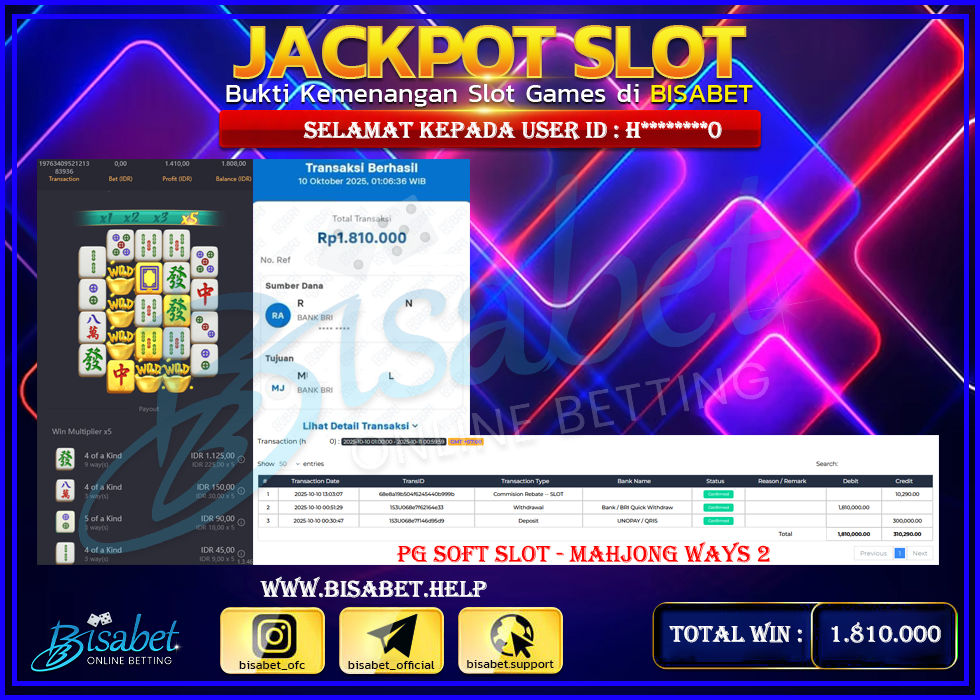 BUKTI JP BISABET – MEMBER DEPO DEPO 300 RIBU JADI 1,810 JUTA