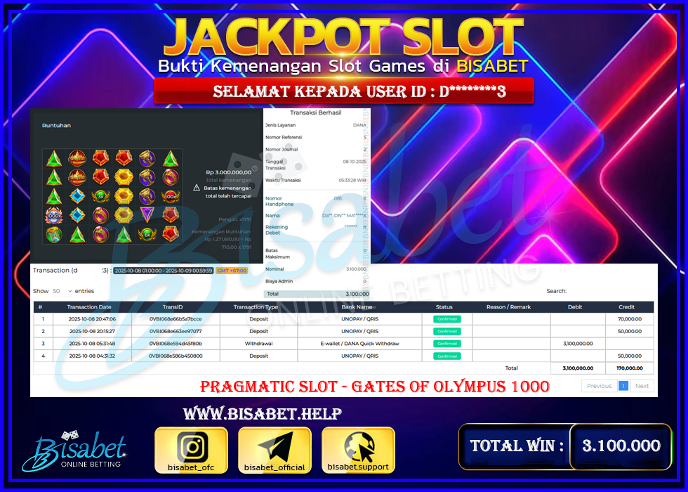 08-10-2025 | Bukti jp bisabet Kemenangan member di bayar tuntas tanpa embel-embel .