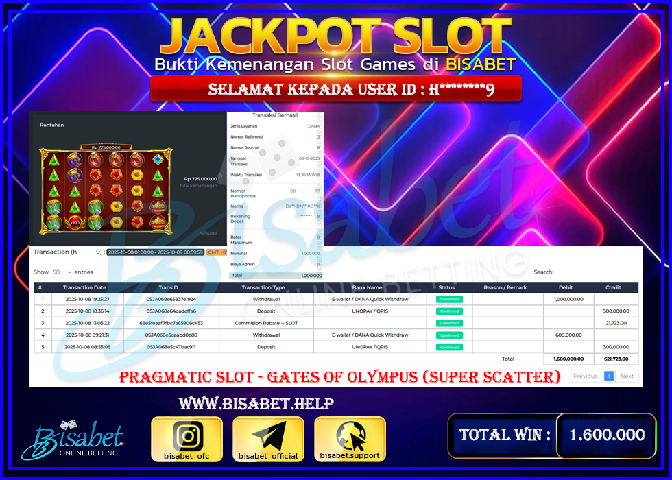 08-10-2025 | Bukti jp bisabet Kemenangan member di bayar tuntas tanpa embel-embel .