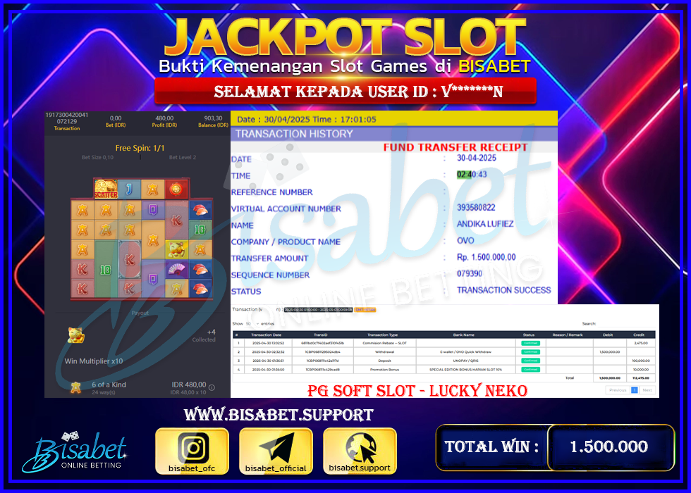 30-04-2025 – Bukti jp bisabet Kemenangan member di bayar tuntas tanpa embel-embel .