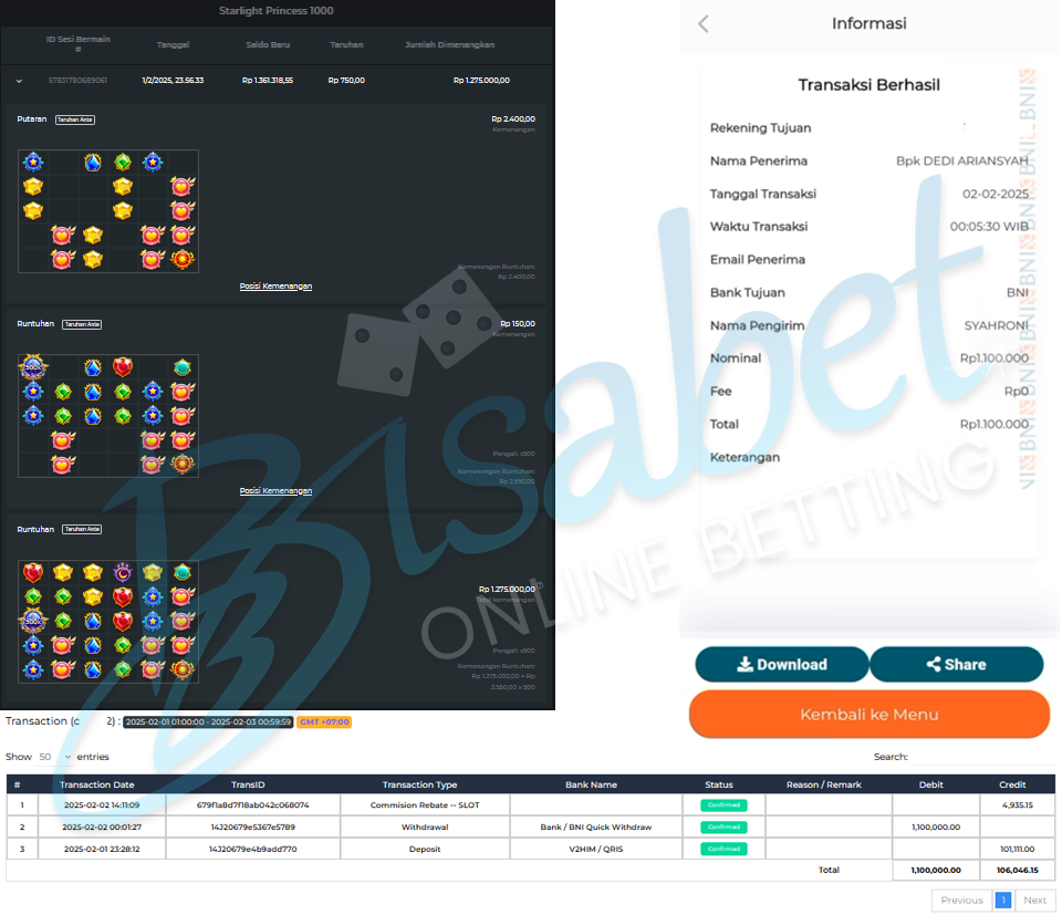 02-02-2025 – Bukti jp bisabet Kemenangan member di bayar tuntas tanpa embel-embel .