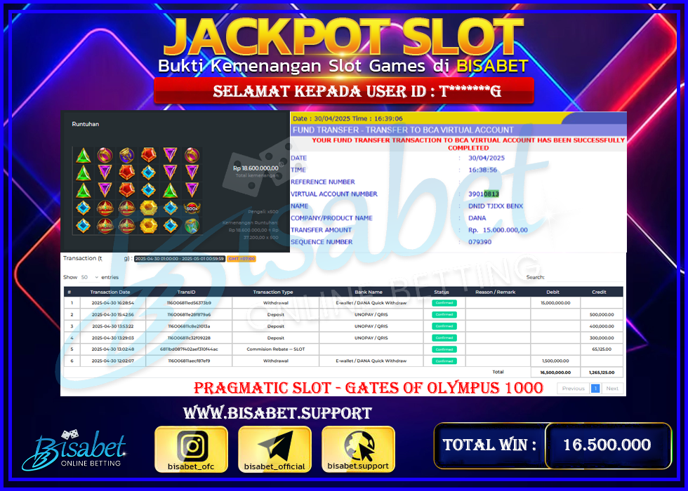 30-04-2025 – Bukti jp bisabet Kemenangan member di bayar tuntas tanpa embel-embel .