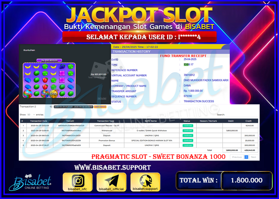 29-04-2025 – Bukti jp bisabet Kemenangan member di bayar tuntas tanpa embel-embel .