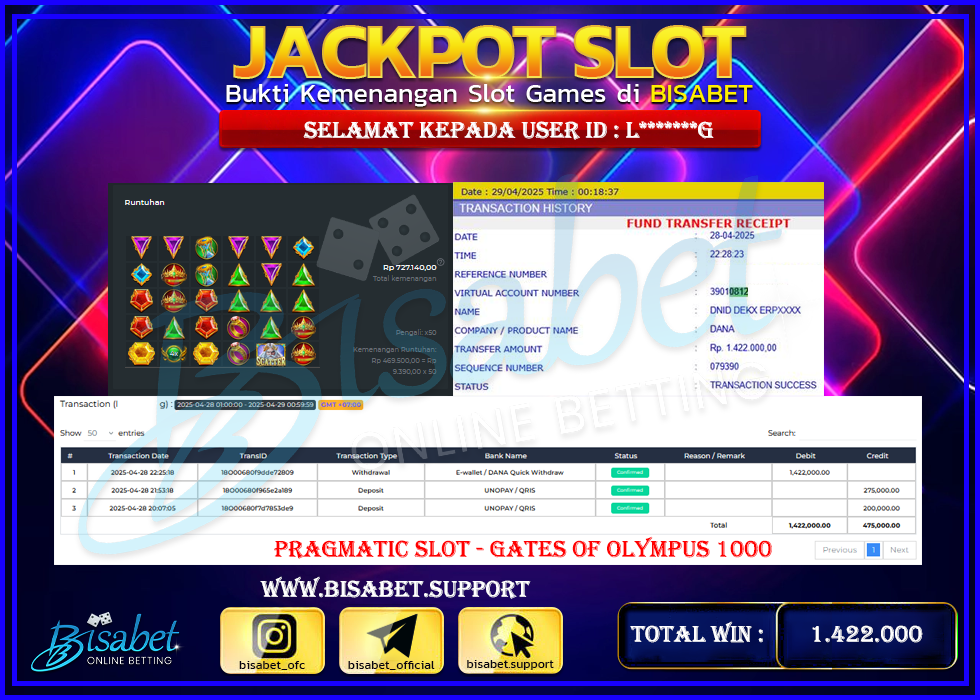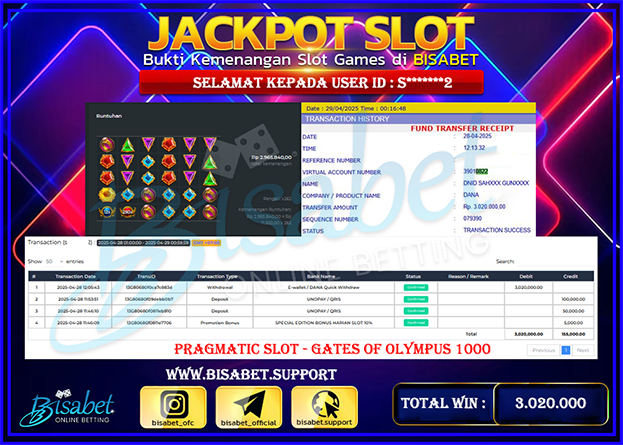 28-04-2025 – Bukti jp bisabet Kemenangan member di bayar tuntas tanpa embel-embel .