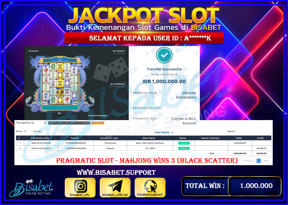 03-05-2025 – Bukti jp bisabet Kemenangan member di bayar tuntas tanpa embel-embel .