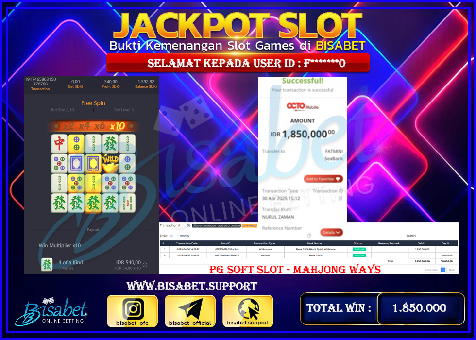 30-04-2025 – Bukti jp bisabet Kemenangan member di bayar tuntas tanpa embel-embel .